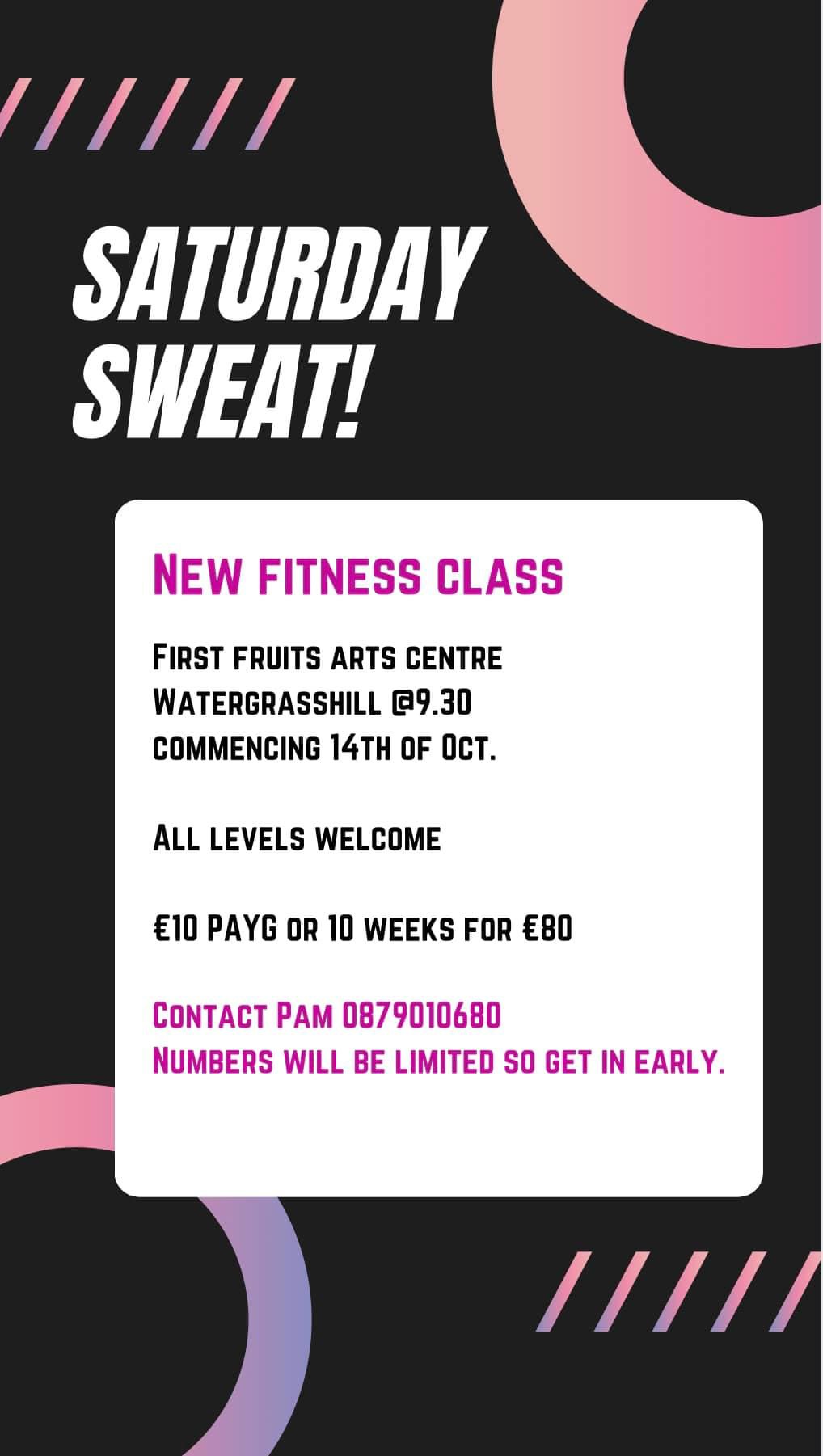 Saturday mornings: 9.30am – 10.30am (x check with Pam)